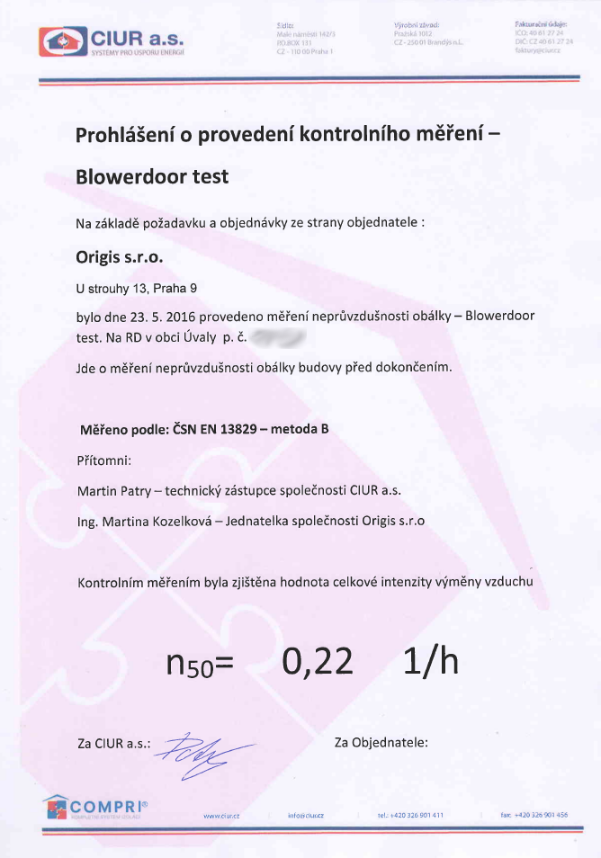 Provádí na našich stavbách měření neprůvzdušnosti obálky budov - Blowerdoor test. Dodává vzduchotěsné pásky TESCON VANA, díky nimž dosahujeme skvělých výsledků při tomto měření. Nejlepší dosažený výsledek na našich stavbách |